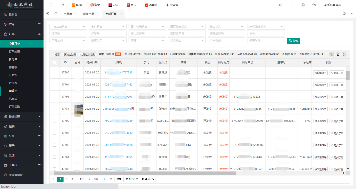 批量訂單獲取、一鍵訂單追蹤、一鍵發貨等